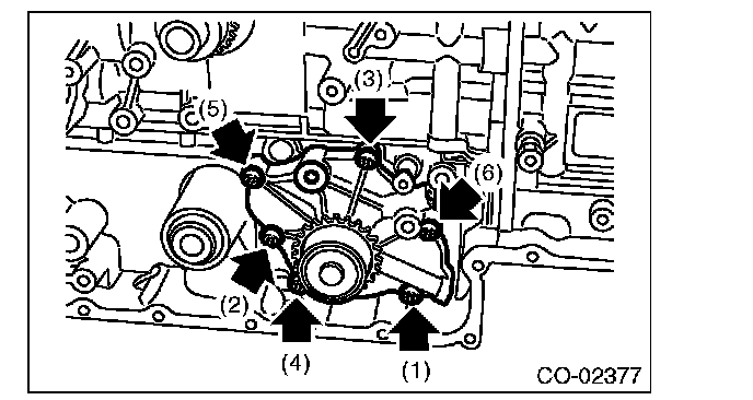 1) Tighten the bolts in the numerical order as shown in the figure, and install water pump to the oil pan upper.