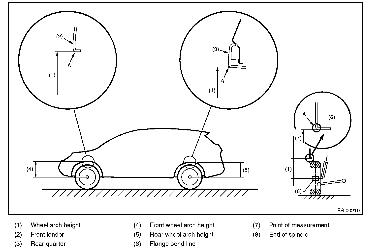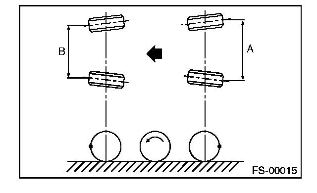 2) Place a mark at the center of both left and right tires, and measure distance "A" between the marks.