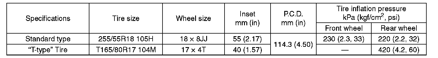 WHEEL AND TIRE SIZE