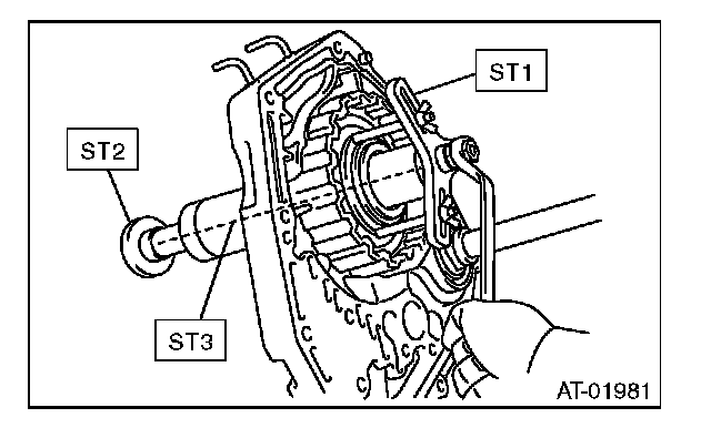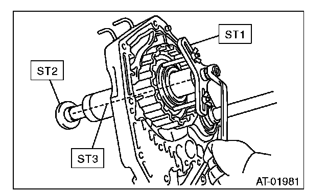 3) Using the ST1, ST2 and ST3, remove the snap ring.
