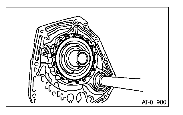 6) Remove the oil pump cover mounting bolt, and then separate the oil pump cover from the AT main case by lightly tapping with plastic hammer.
