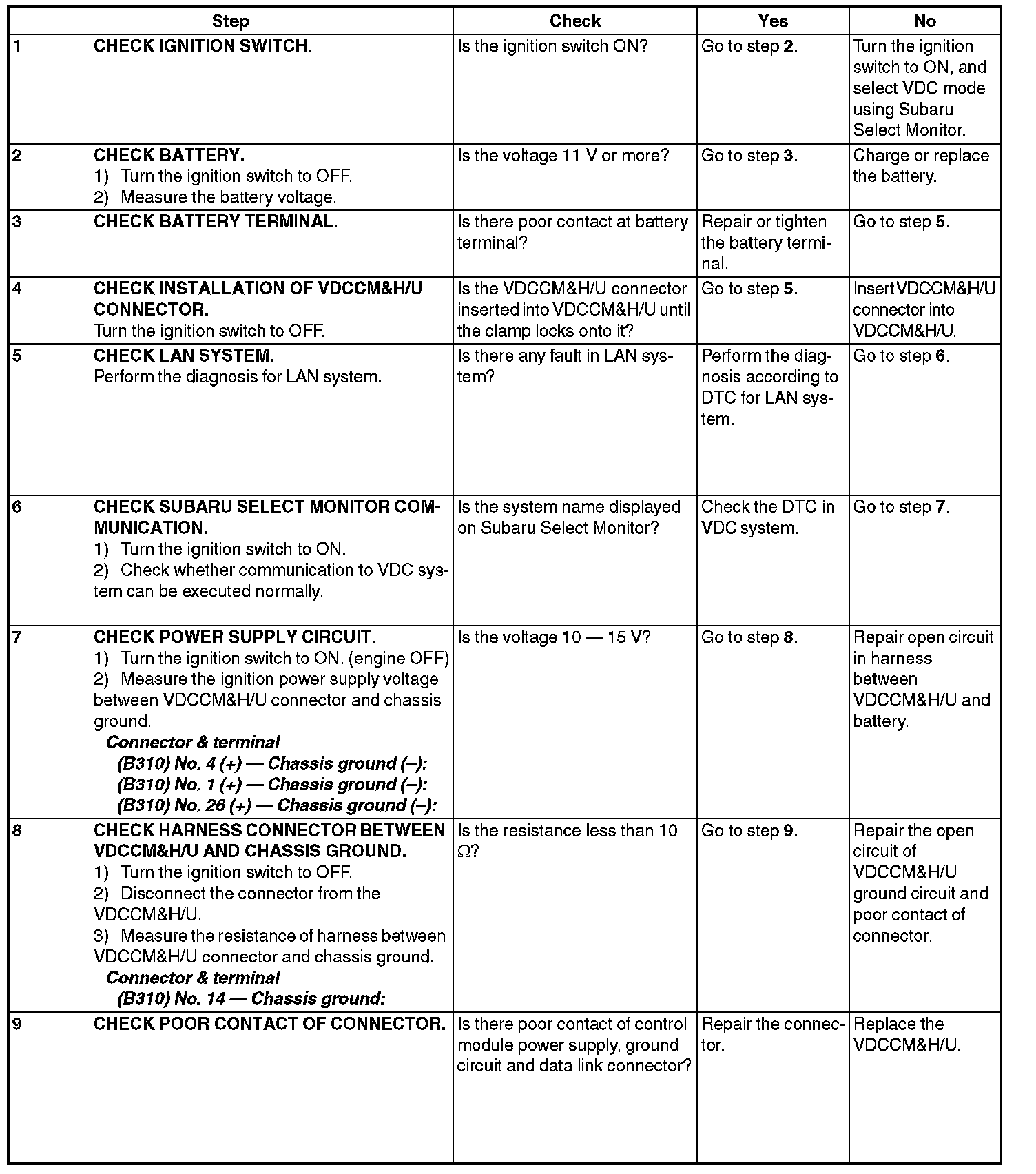 8) If VDC and Subaru Select Monitor cannot communicate, check the communication circuit.