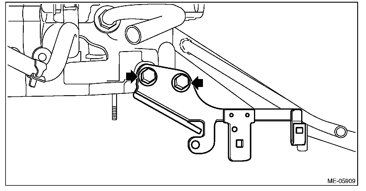 23) Install the mounting bolts for the A/C compressor and the generator bracket at the locations shown in the figure.