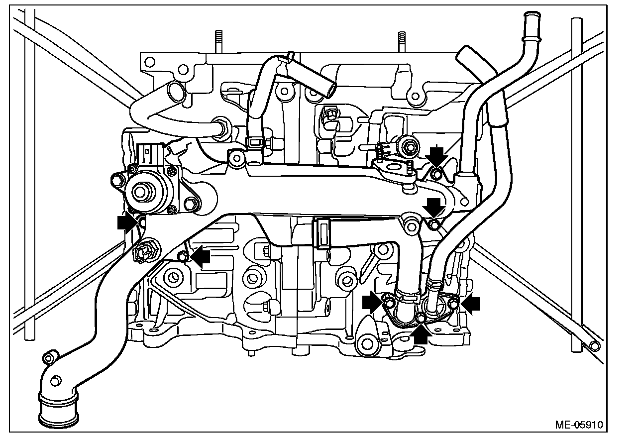 10) Remove the bolts securing the water pipe assembly and PCV connector to the cylinder block, and remove the water pipe assembly and PCV connector as a set from cylinder block.