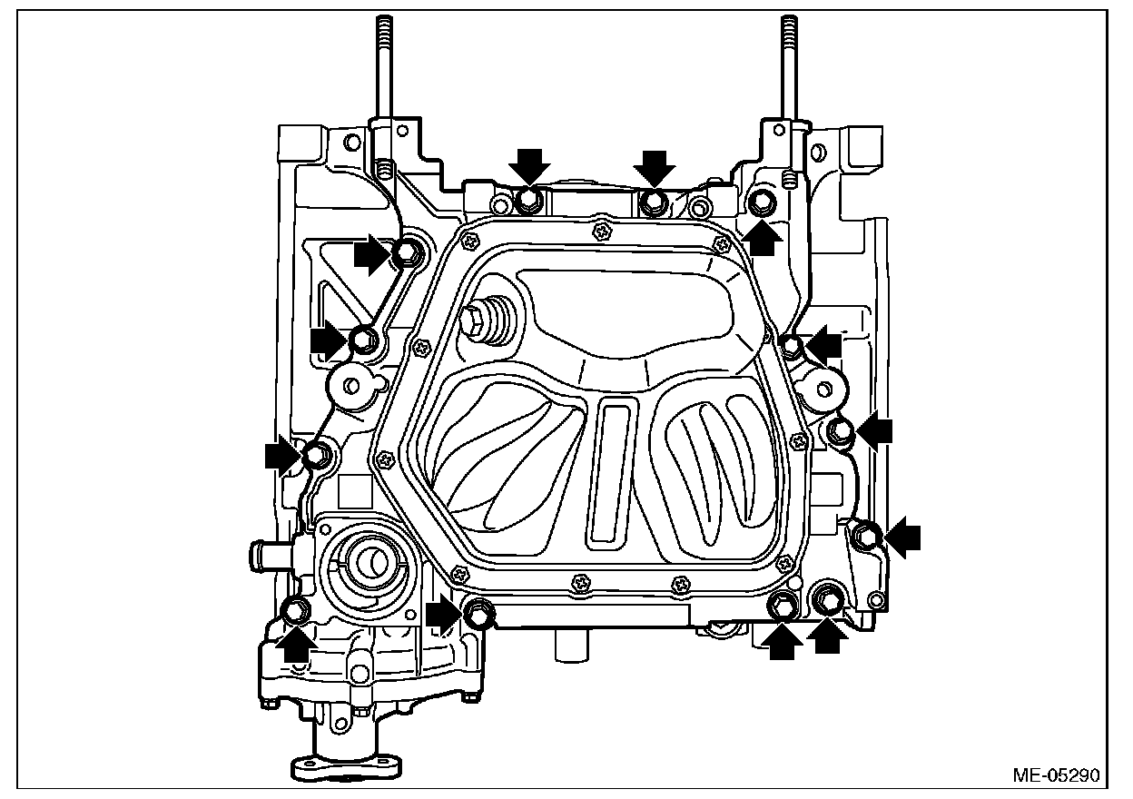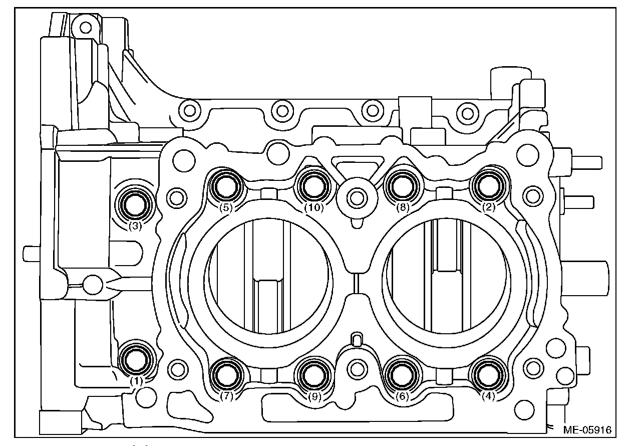 (2) Loosen the cylinder block mounting bolts in numerical order as shown in the figure, and separate the cylinder block RH and LH.