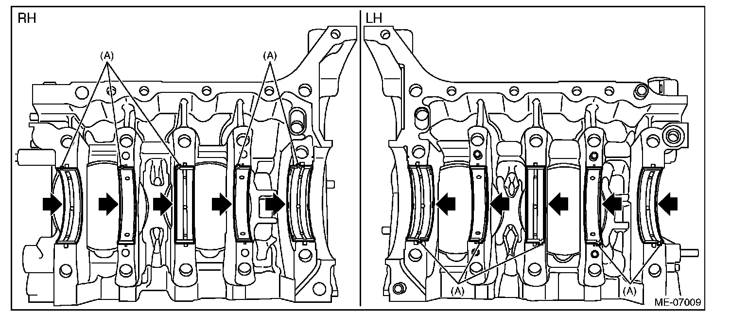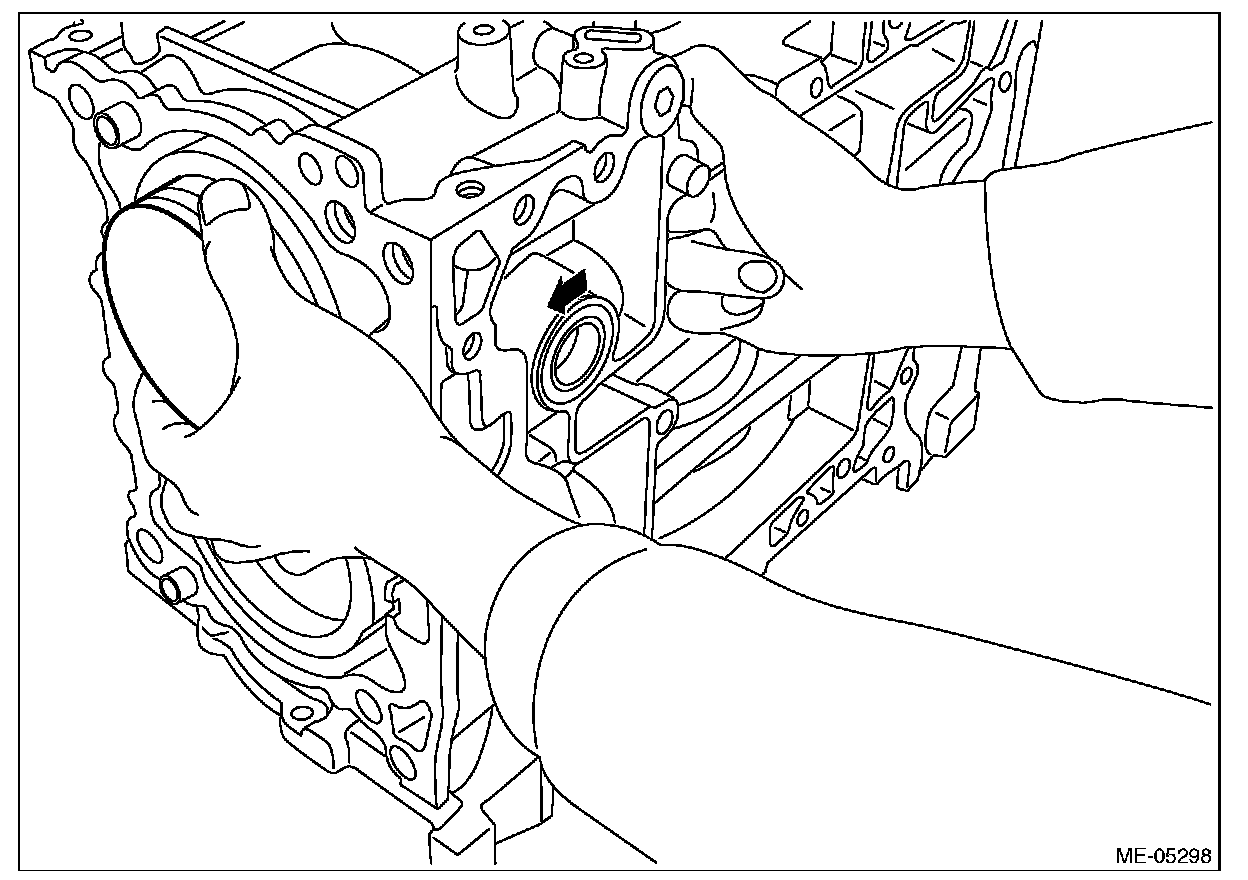 Lift the cylinder block RH slightly, and confirm that the crankshaft is remaining in the cylinder block LH. If the cylinder block RH is lifted carelessly when separating, the crankshaft may stick to cylinder block RH, then fall off.