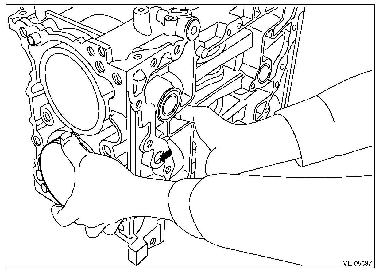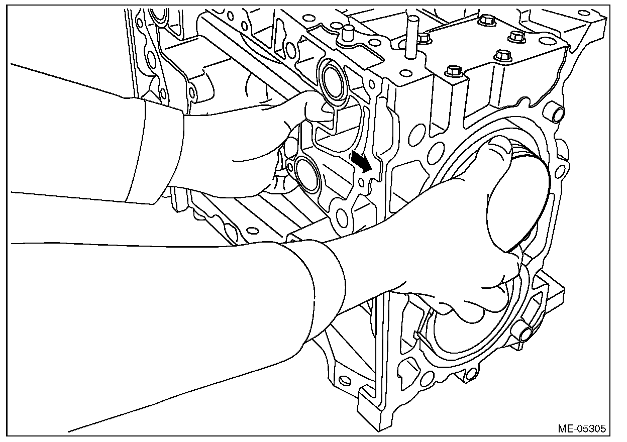 ^ Be careful not to scratch the mating surface of cylinder block during work.
