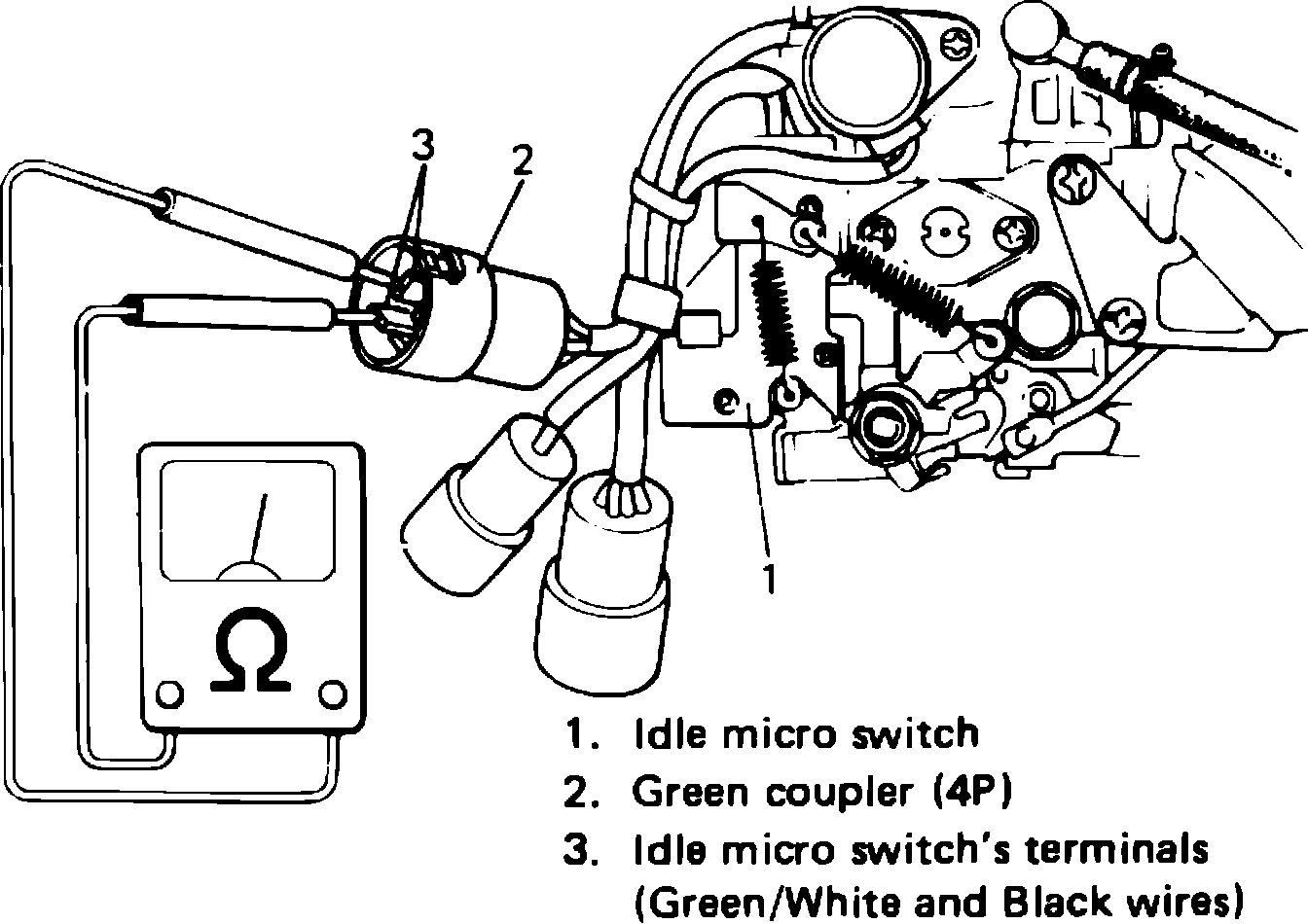 3. Connect ohmmeter to terminals of idle micro switch as shown in Fig. 5. When throttle valve is in idle position, ohmmeter should indicate zero ohms.