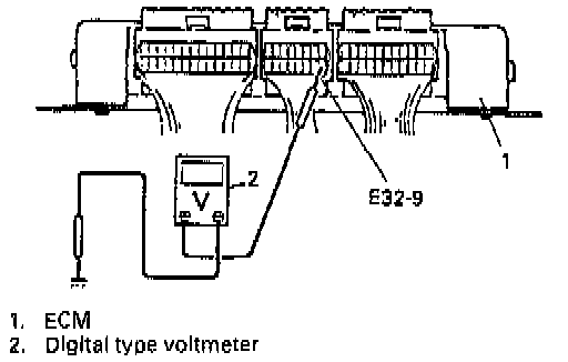 6) Turn ignition switch ON and check voltage at "E32-9" terminal.