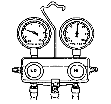 2) Connect high and low side charging hoses of manifold gauge to hose fittings of A/C component.
