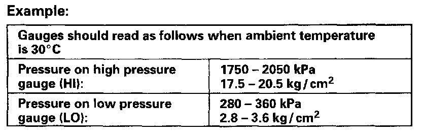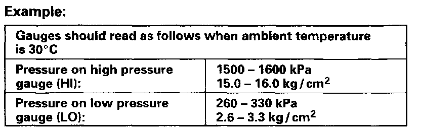 If each gauge reading is out of specified pressure, correct defective part referring to following Diagnosis table.