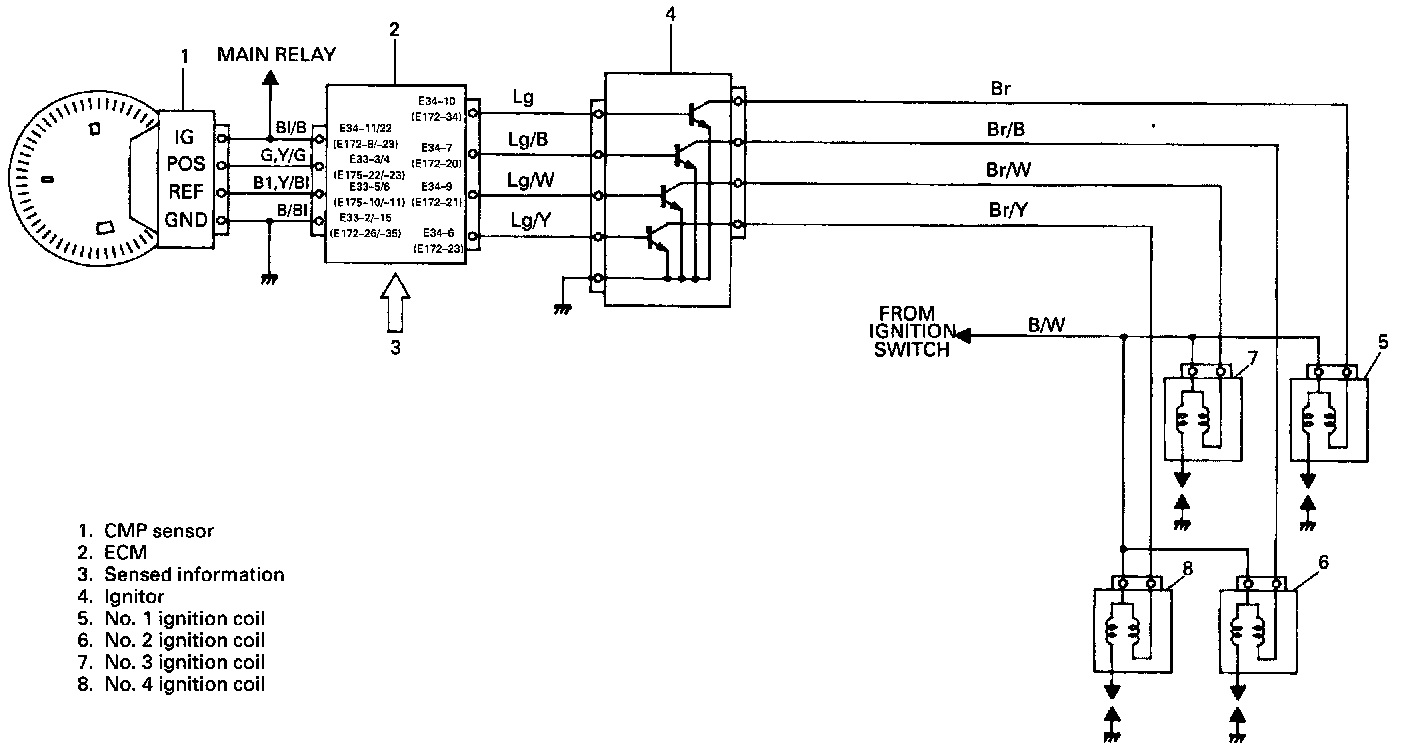 The igniter turns ON and OFF the primary current of the ignition coils according to the signal from ECM.