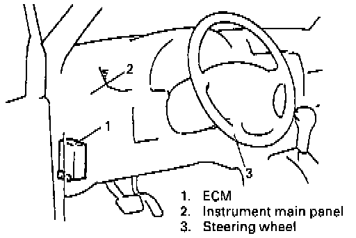 ECM is installed to the underside of the instrument panel at the driver's seat side.