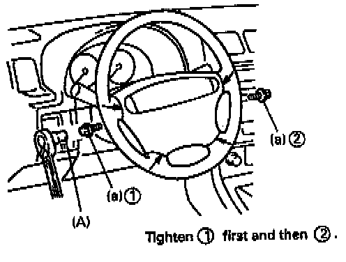 2. Tighten air bag (inflator) module left side bolt first and then its right side bolt to specified torque.