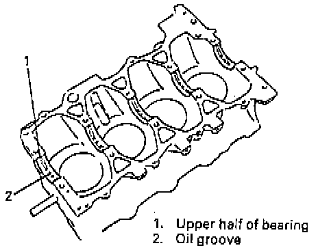 - Upper half of bearing has oil groove as shown in figure. Install this half with oil groove to cylinder block.