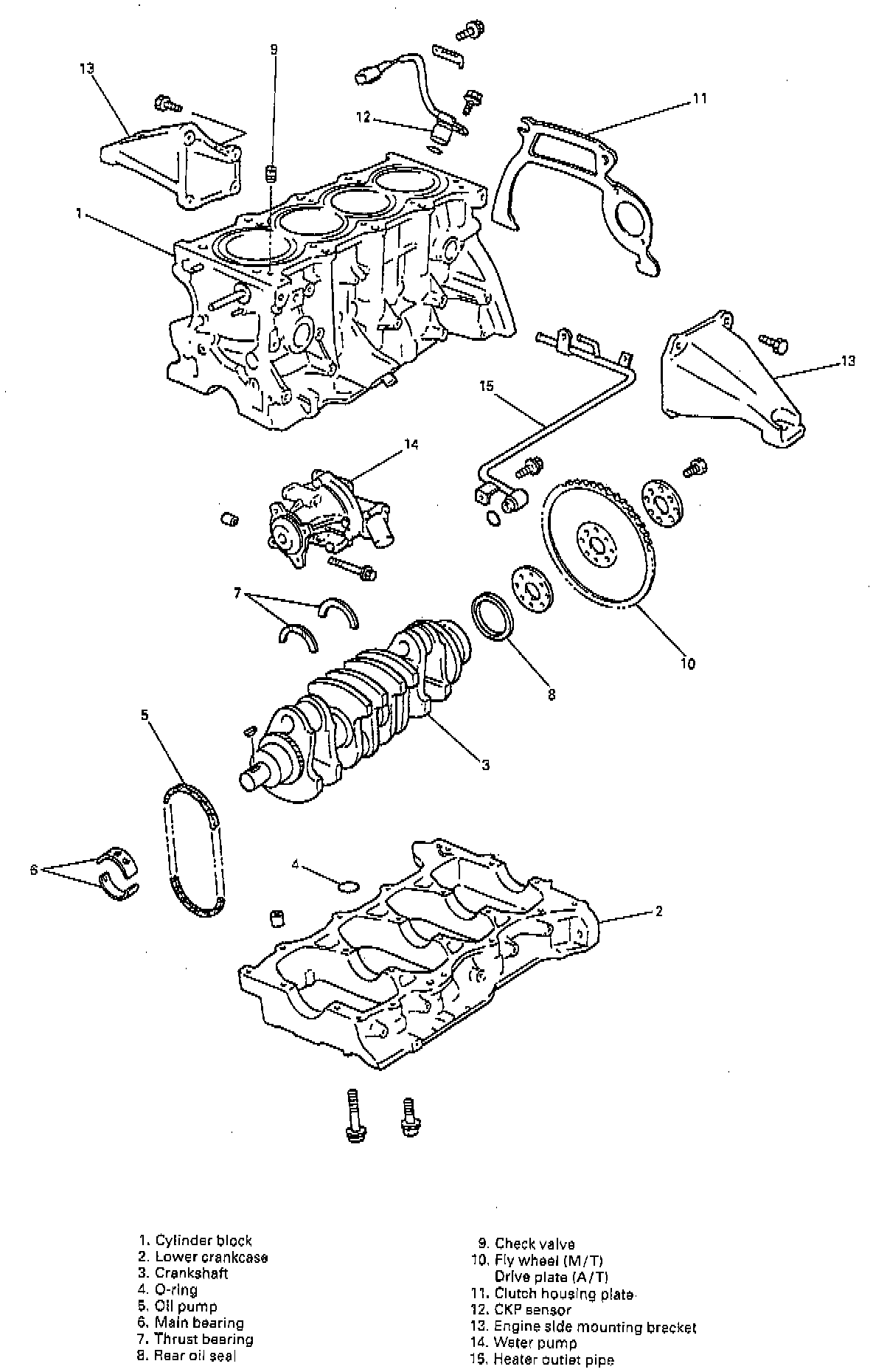 12. Remove water pump and heater outlet pipe.