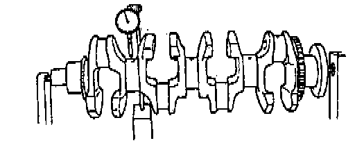 Using a dial gauge, measure runout at center journal. Rotate crankshaft slowly. If runout exceeds its limit, replace crankshaft.