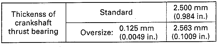 If its limit is exceeded, replace thrust bearing with new standard one or oversize one to obtain standard thrust play.