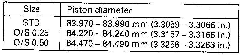 B: Piston clearance = 0.02 - 0.04 mm (0.0008 - 0.0015 inch)