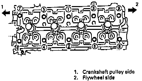1. Tighten all bolts to 53 Nm (38.5 ft. lbs.) according to numerical order in figure.