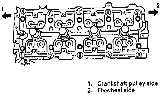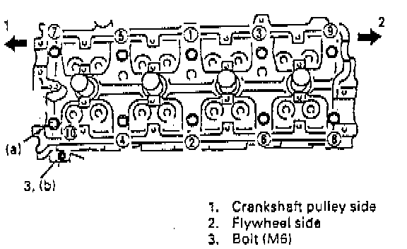 3. Loosen all the bolts until tightening torque is reduced to 0 in the illustrated order.