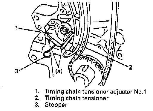 Install timing chain tensioner as shown in figure.