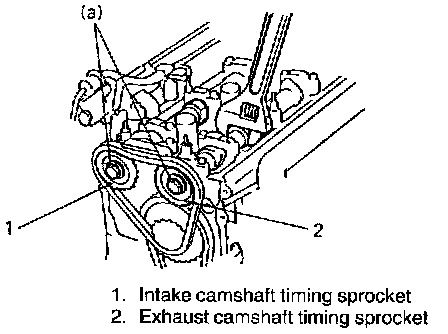 Install intake and exhaust camshaft timing sprocket bolts. To install it, fit a spanner to hexagonal part at the center of camshaft to hold stationary.