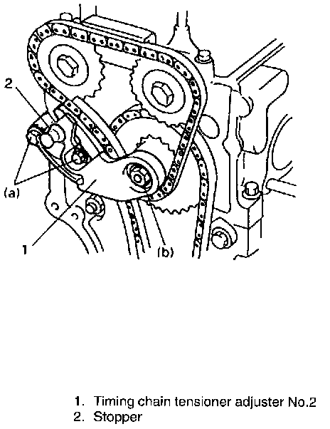 Install timing chain tensioner adjuster No.2 with gasket.