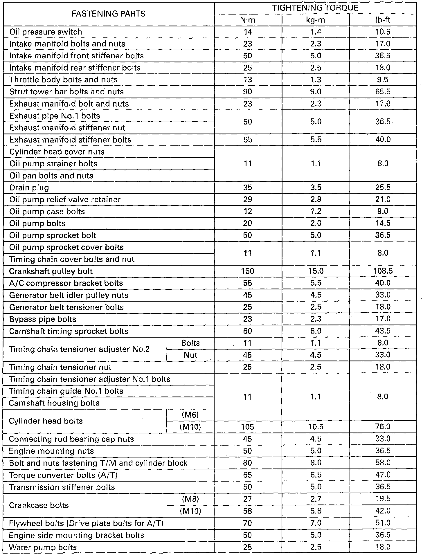 M10 (a) 105 Nm (76.0 ft. lbs.)