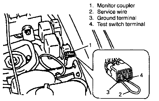 (2) Disconnect scan tool from DLC if connected and ground test switch terminal in monitor coupler by using service wire so that ignition timing is fixed on initial one.