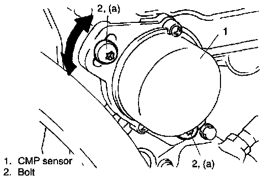 7) If ignition timing is out of specification, loosen flange bolts, adjust timing by turning CMP sensor while engine is running, and then tighten bolts.