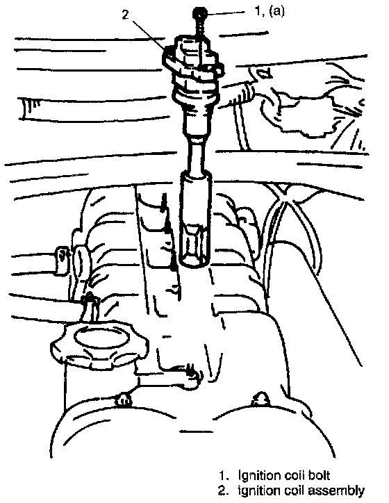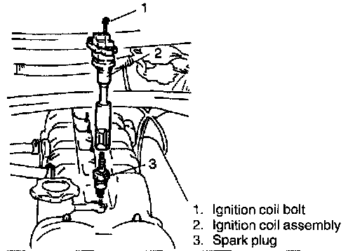 2) Remove ignition coil assembly bolt, and then pull out ignition coil assembly.