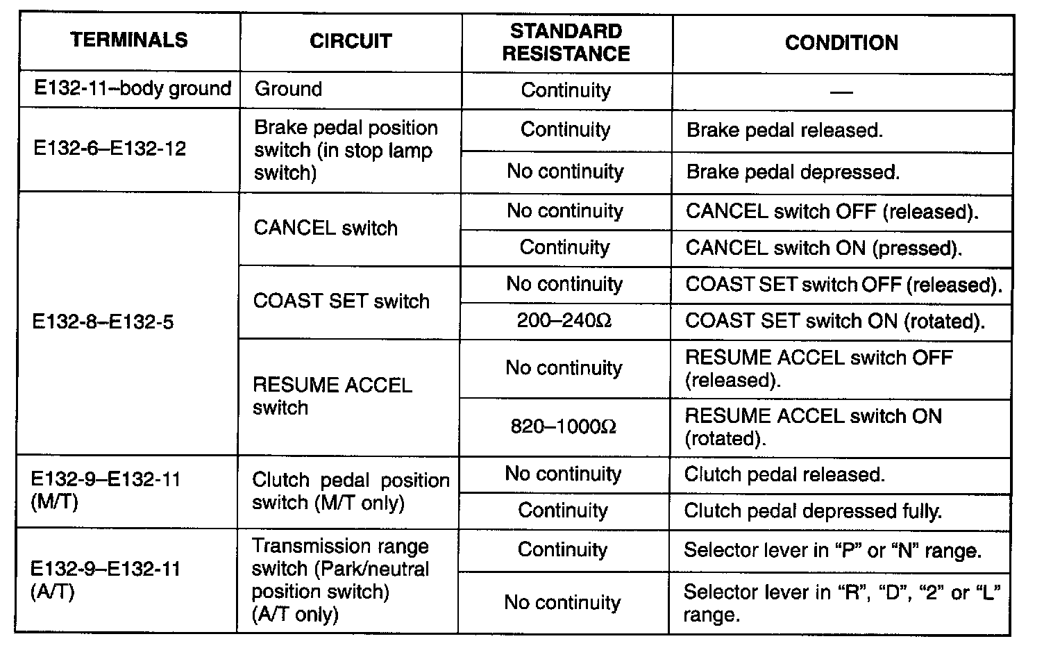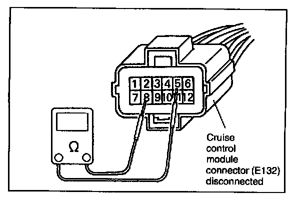 CAUTION: Never touch terminals of cruise control module itself or connect voltmeter or ohmmeter.