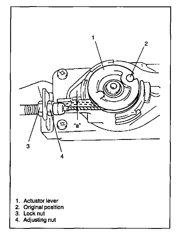 2. With actuator lever returned at original position (Where lever does not move clockwise any further), check cruise cable for play.