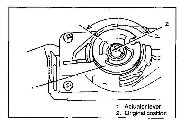 3. When hand is taken off from actuator lever at the position in 2) above, it should return to its original position by return spring force. If actuator lever does not operate as described, replace it.