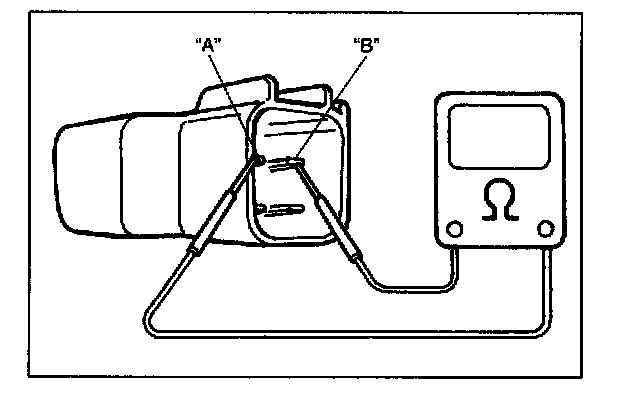 Using ohmmeter, check to be sure that capacitor (condenser) in noise suppressor is not conductive.