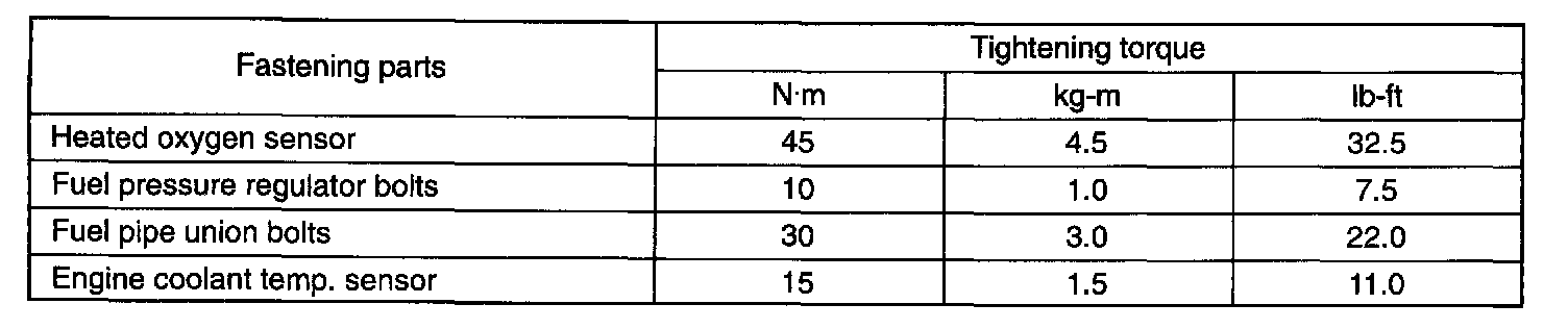 Tightening Torque Specifications: