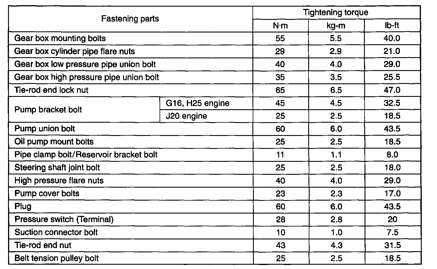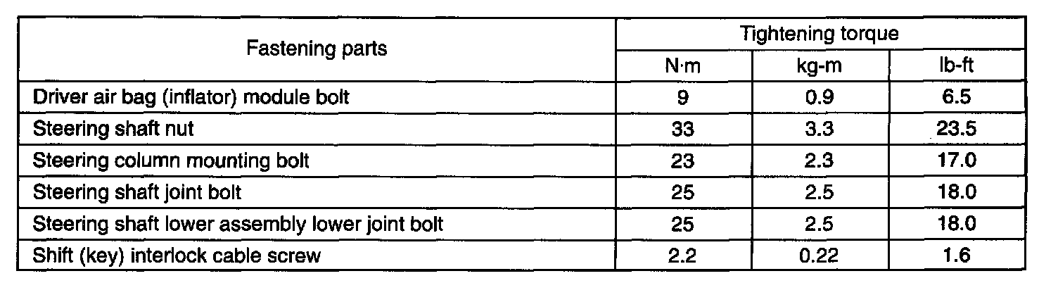 TIGHTENING TORQUE SPECIFICATIONS