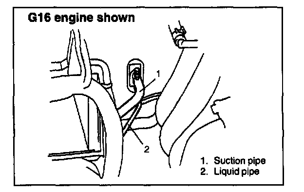 NOTE: As soon as above hose and pipe are disconnected, cap opened fittings so that moisture and dust may not enter cooling unit.