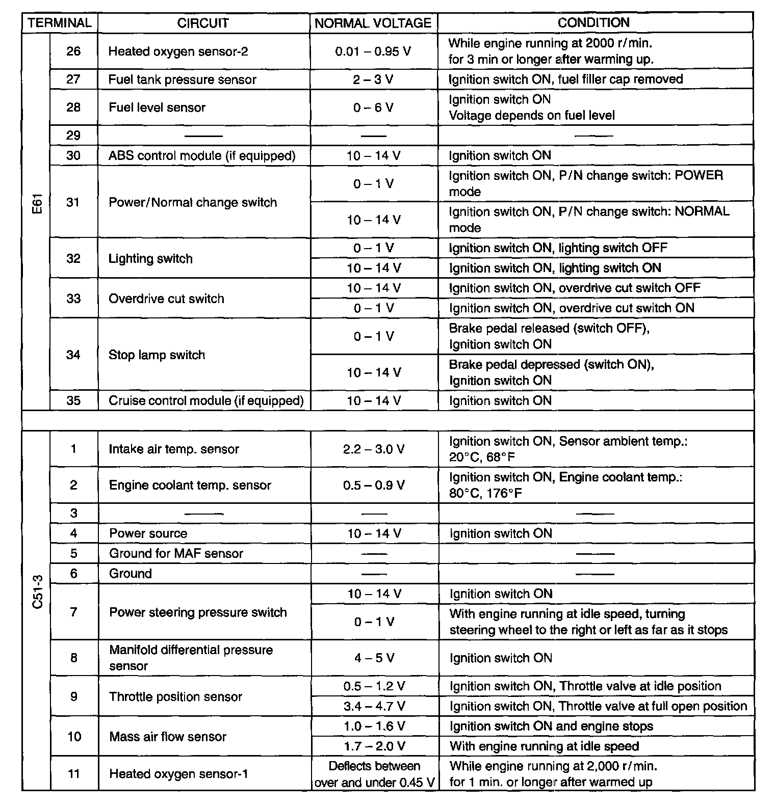 E61 (26 - 35) , C51-3 (1 - 11):