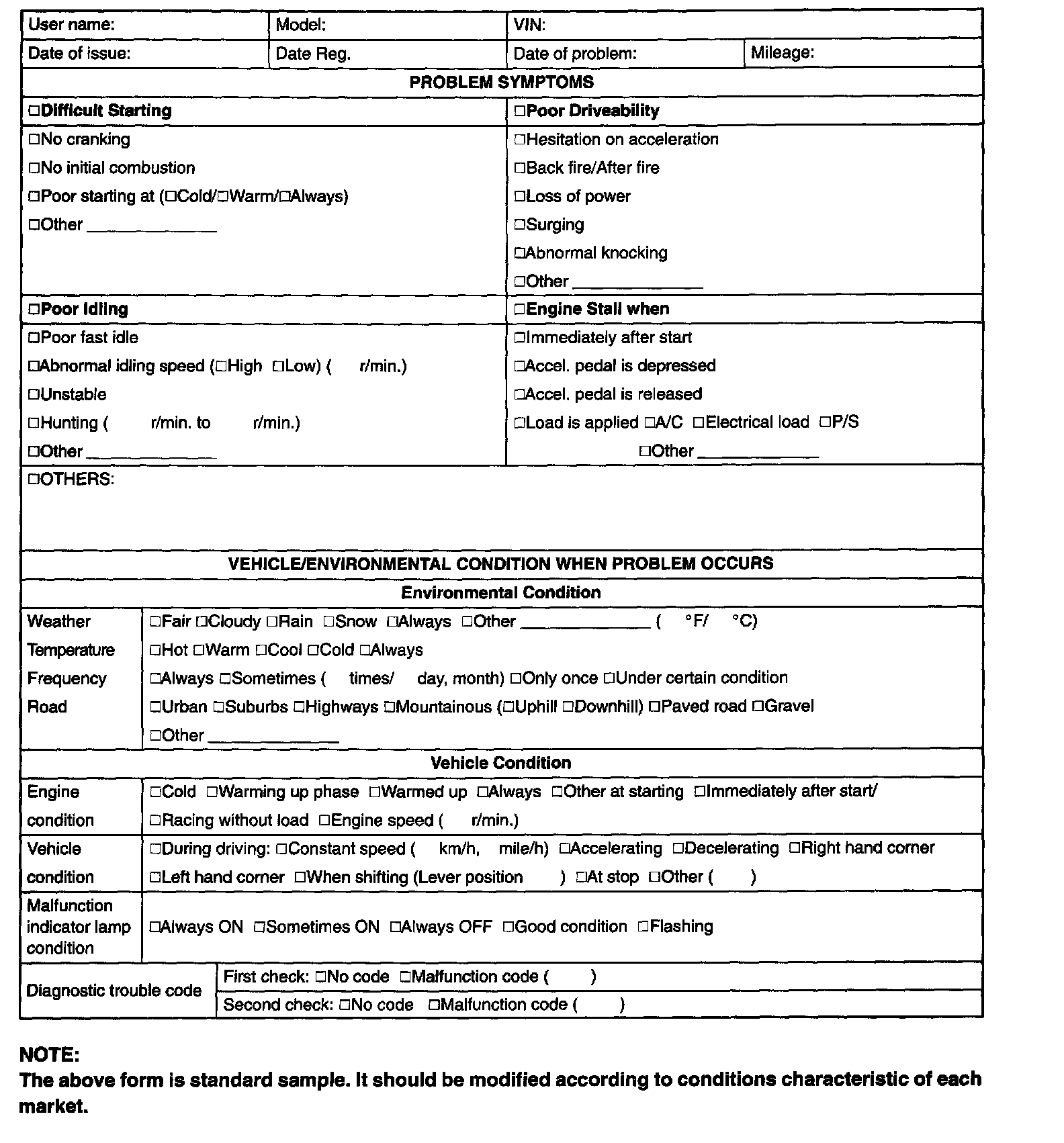 Customer Problem Inspection Form (Example):
