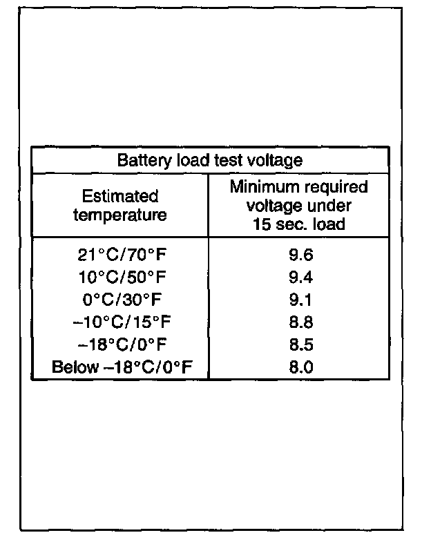 NOTE: Temperature of battery will affect minimum voltage required to pass load test.