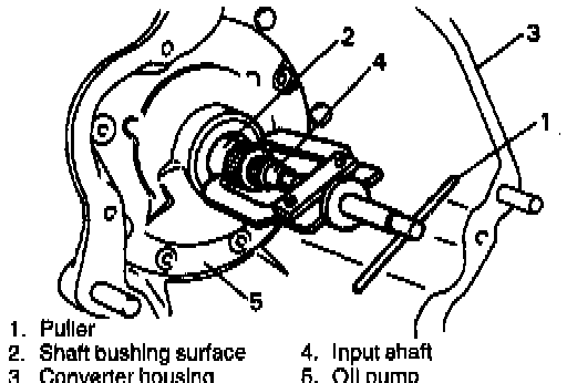 CAUTION: Remove torque converter as much straight as possible. Leaning it may cause to damage oil seal lip.
