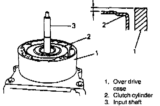 11. Check dimensions of Overdrive (O/D) case surface and clutch cylinder surface for reassembly.