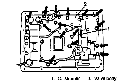 18. Remove valve body mounting bolts as shown in figure.