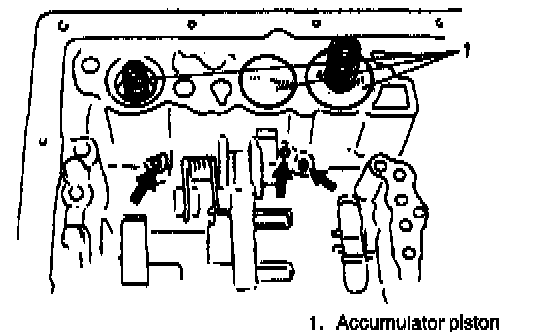 21. Remove accumulator pistons by blowing air into holes indicated in figure.