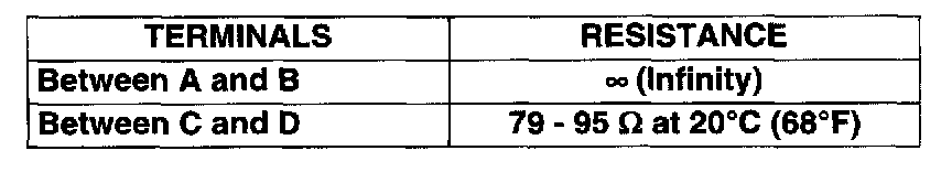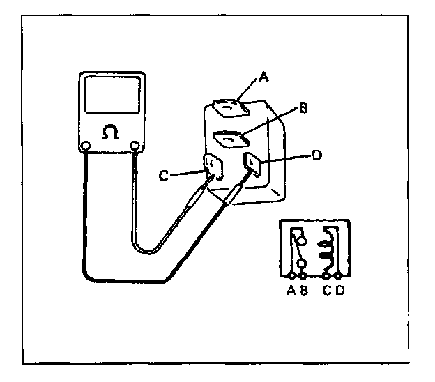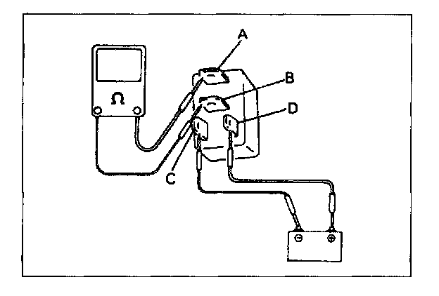 4. Check that there is continuity between terminals "A" and "B" when battery is connected to terminals "C" and "D".