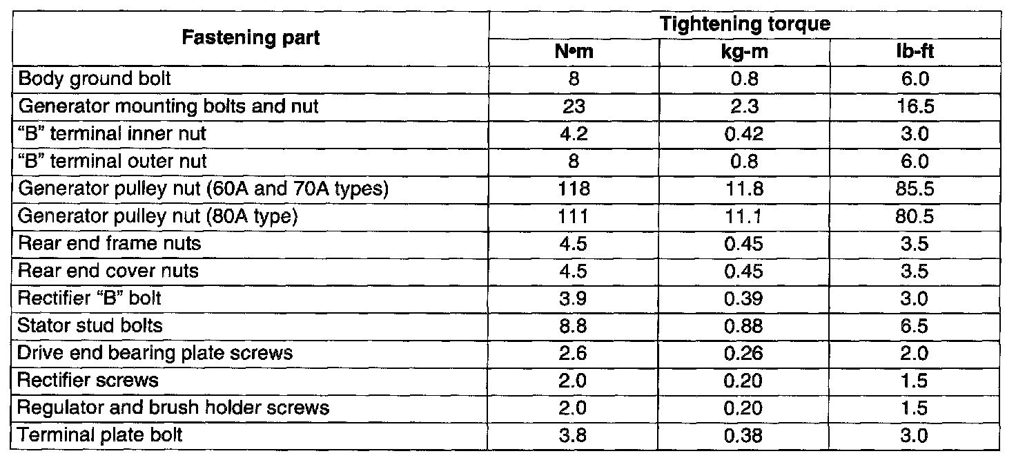 Tightening Torque Specification: