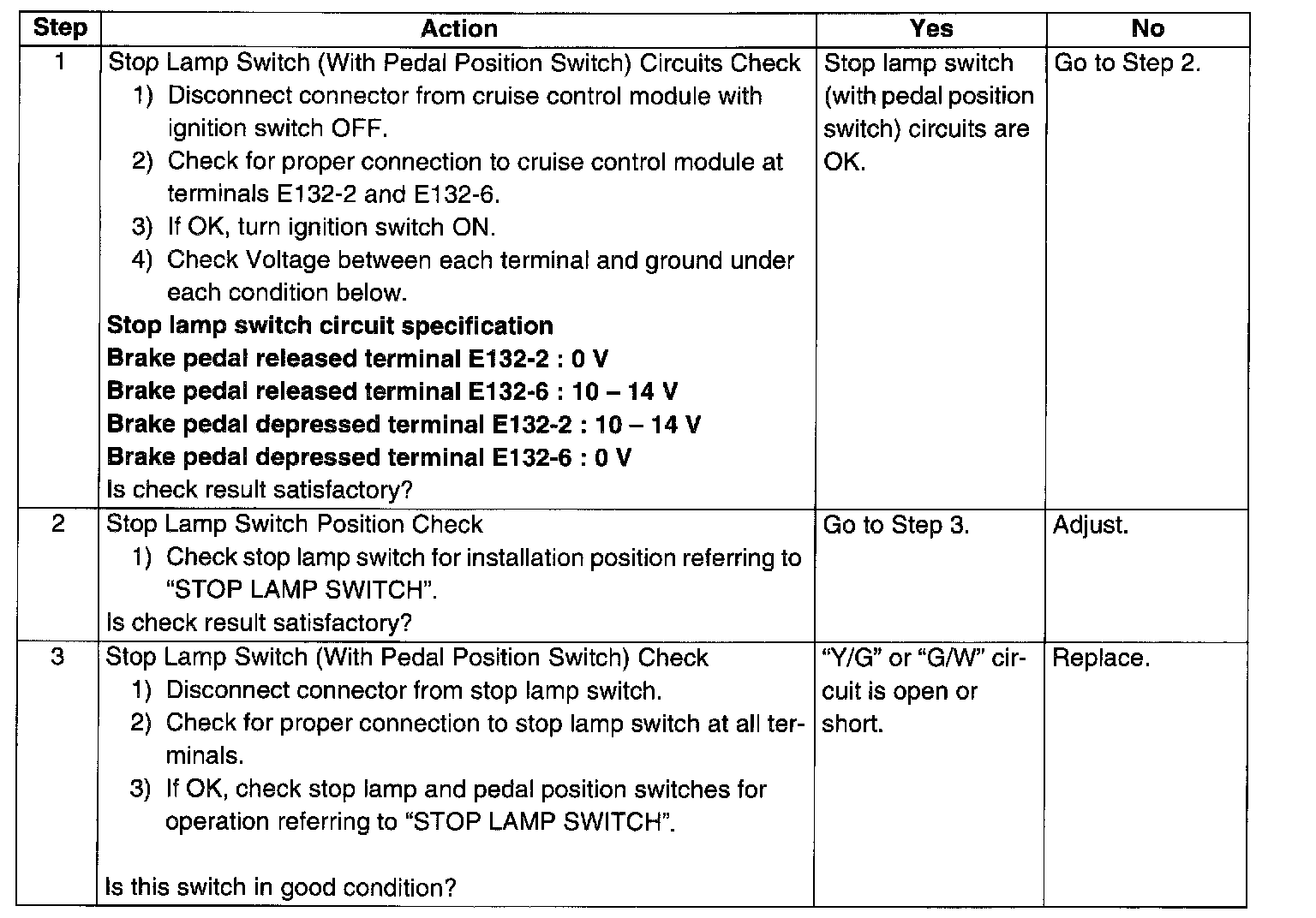 Stop Lamp Switch (With Pedal Position Switch) Circuit Check (Step 1 -3):