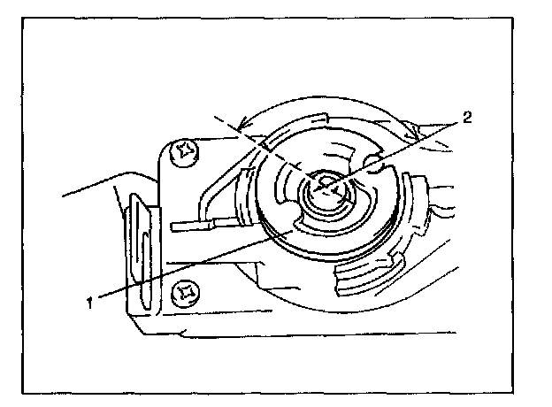 3. When hand is taken off from actuator lever (1) at the position in 2) above, it should return to its original position (2) by return spring force. If actuator lever (1) does not operate as described above, replace it.
